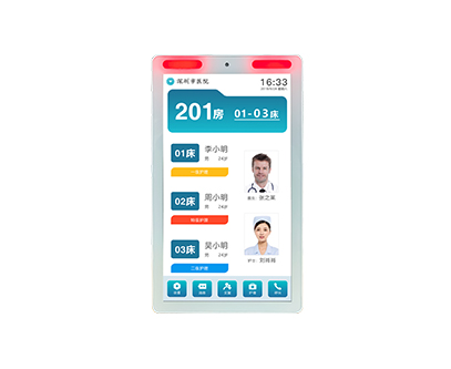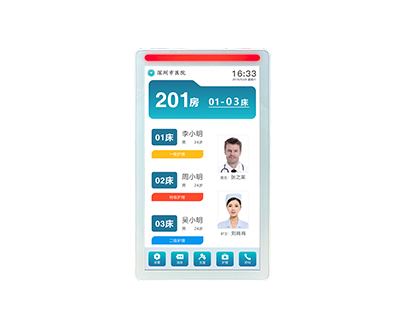 产品型号:BH-F7 尺寸有:7/8/10.1寸 产品描述:显示患者姓名、性别、年龄、住院号、病情、护理等级、过敏、隔离、护理注意事项等重要信息,可翻页查询费用、诊断、医嘱等详细信息